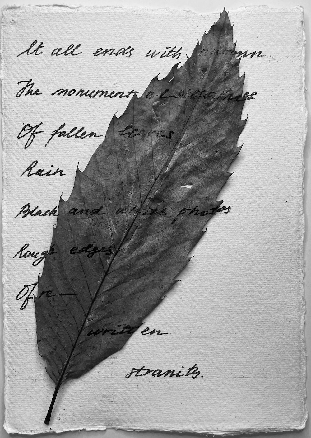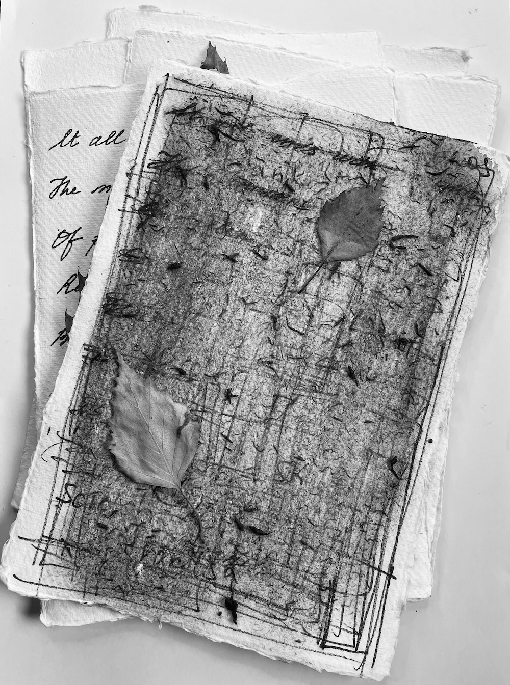 Mix-media: 100% cotton recycled paper, ink, pencil, leaves, rubber remains, water, soil.